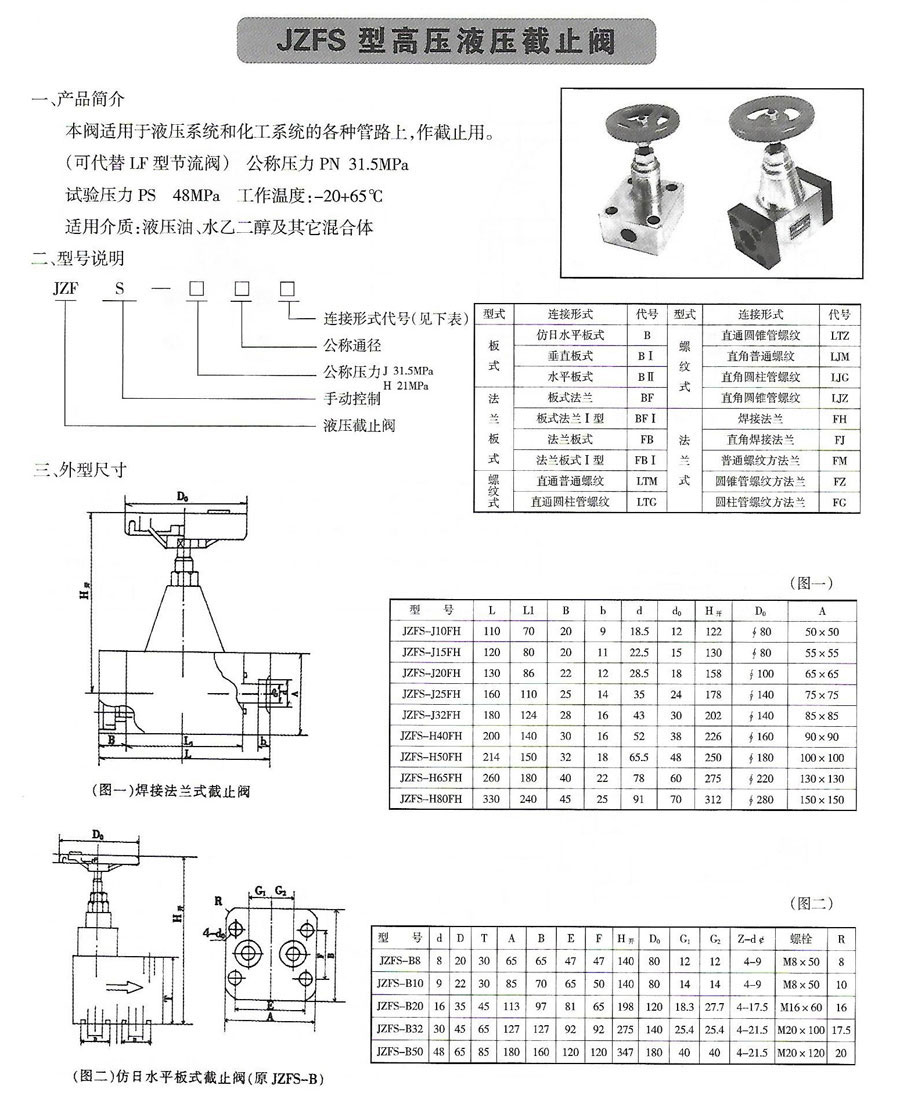 JZFS型高壓液壓截止閥