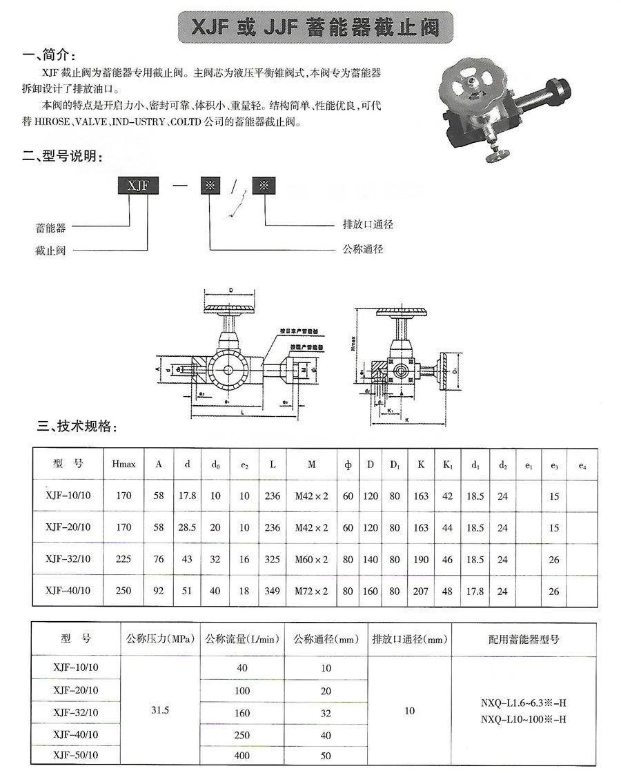 XJF或JJF蓄能器截止閥